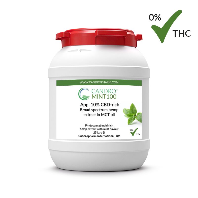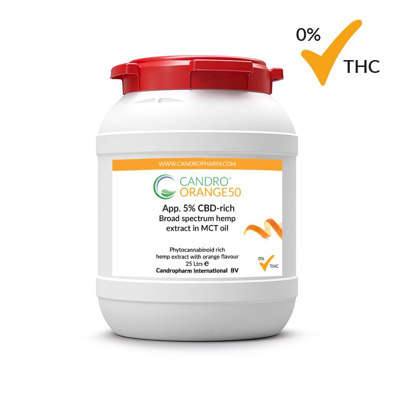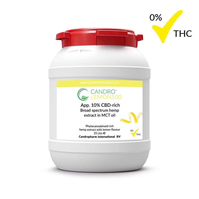 Candropharm International offers three flavoured phytocannabinoid rich broad spectrum hemp oils in MCT: orange, mint, and lemon. The hemp oil has a superior profile, is loaded with cannabinoids and terpenes and has a CBD profile to your choice (5 or 10%). This flavoured hemp oil has not been adulterated with other agents. Candropharm’s flavoured broad spectrum THC-Free* hemp oil is the perfect solution for manufacturers who need a finished oil that meets their long-term quality requirements.