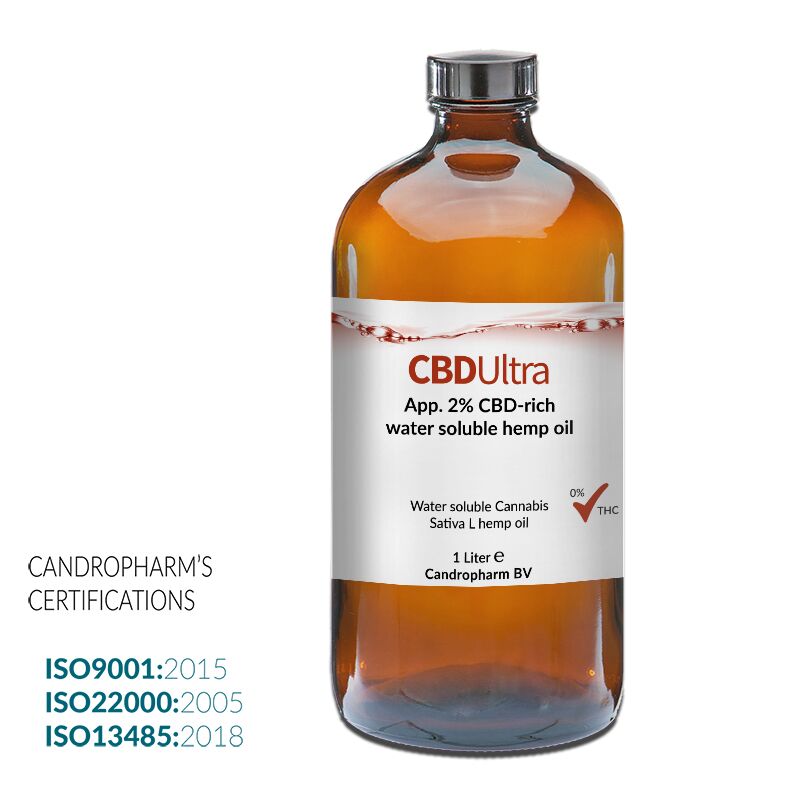 Candropharm is Europeโs largest producer and leader of CBD products, exporting to over 40 countries worldwide. We are Europe’s first CBD company to be ISO9001:2015, ISO22000:2018 and ISO13485:2016 certified. These certifications guarantee the highest food quality production this water soluble hemp oil.