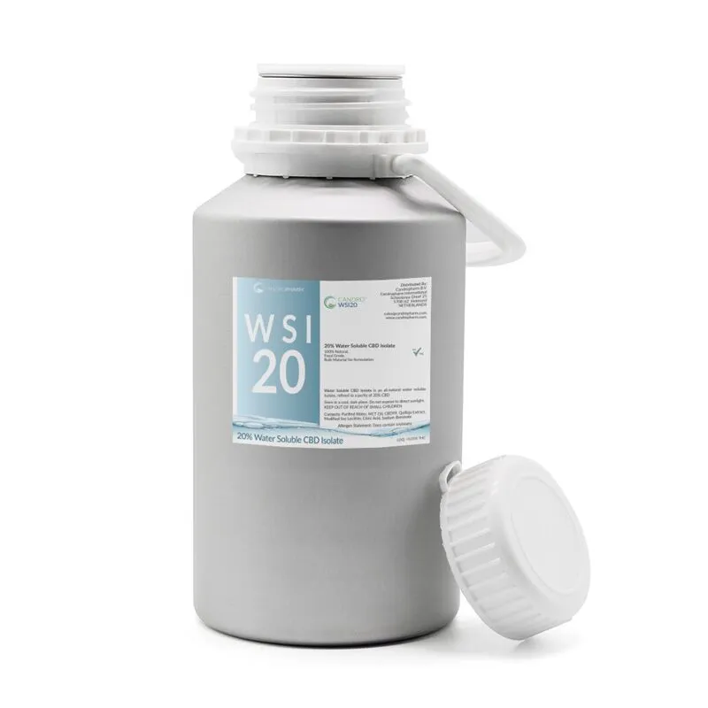 O isolado de CBD solúvel em água mistura-se facilmente em bebidas e alimentos. Actua mais rapidamente no organismo. A Candropharm é um dos principais distribuidores de CBD solúvel em água na Europa.